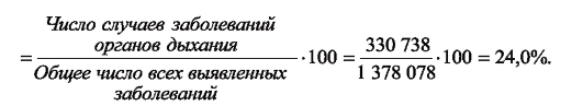 Структура неэпидемической заболеваемости (в %) | = | Число случаев заболеваний одной из нозологических форм | х 100 | ф. |